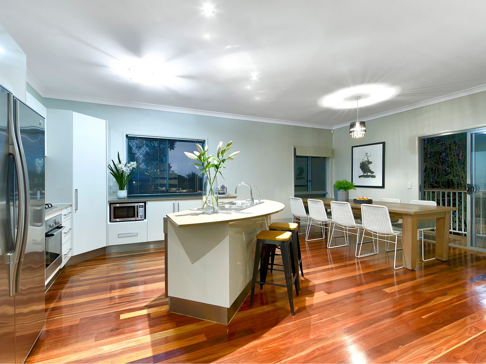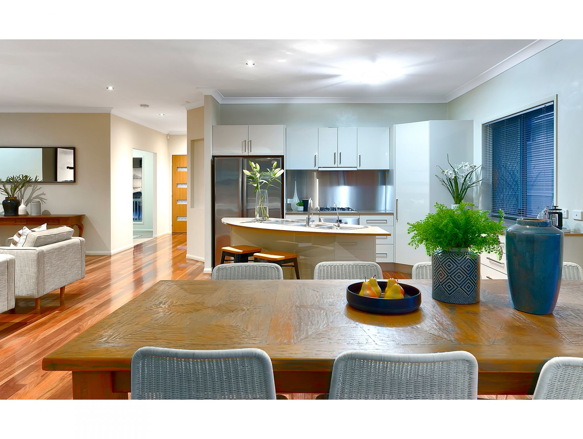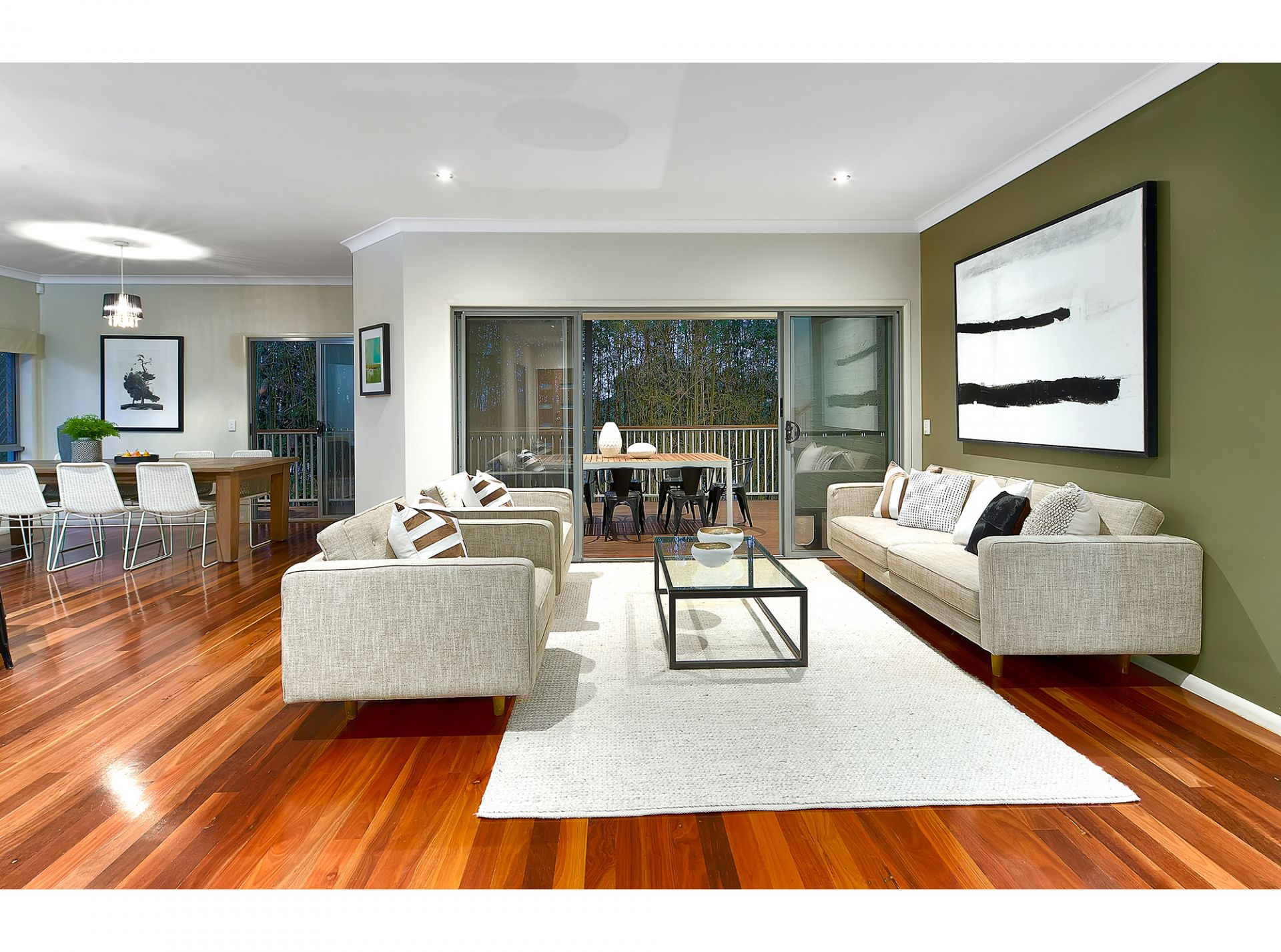 Open plan living, dining and kitchen