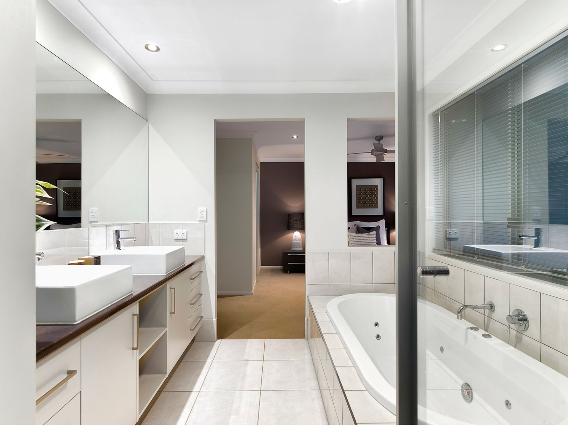 Stylish master ensuite with double basins and spa