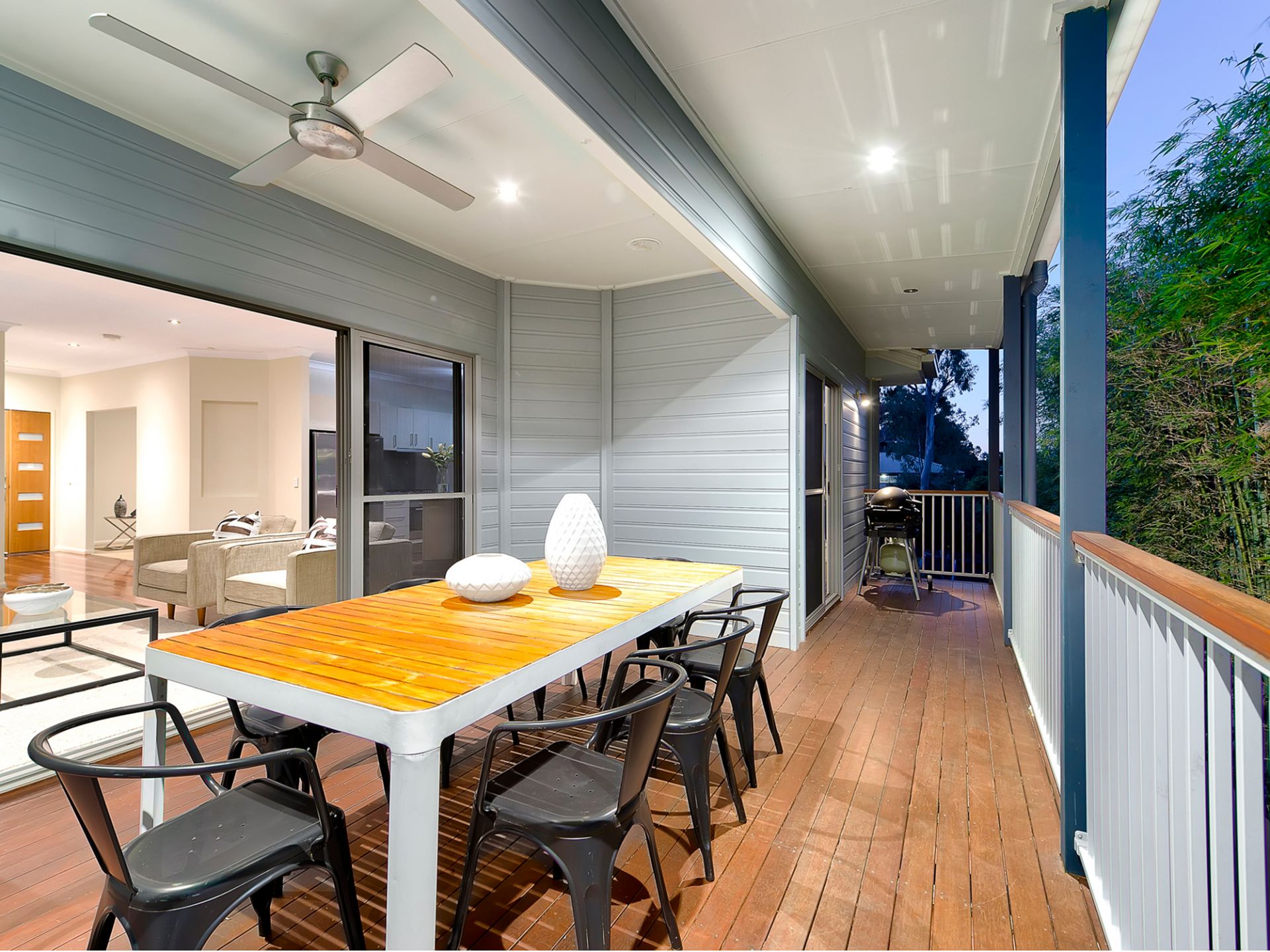 At the heart of the home on the main entry level are generous open plan living, dining and kitchen areas. Beautiful polished hardwood floors and extensive use of windows provide a great sense of space and maximise the natural light. The open plan feel continues through the large glass slider doors leading out to a private covered deck - the perfect spot for entertaining, summer dining or just relaxing.